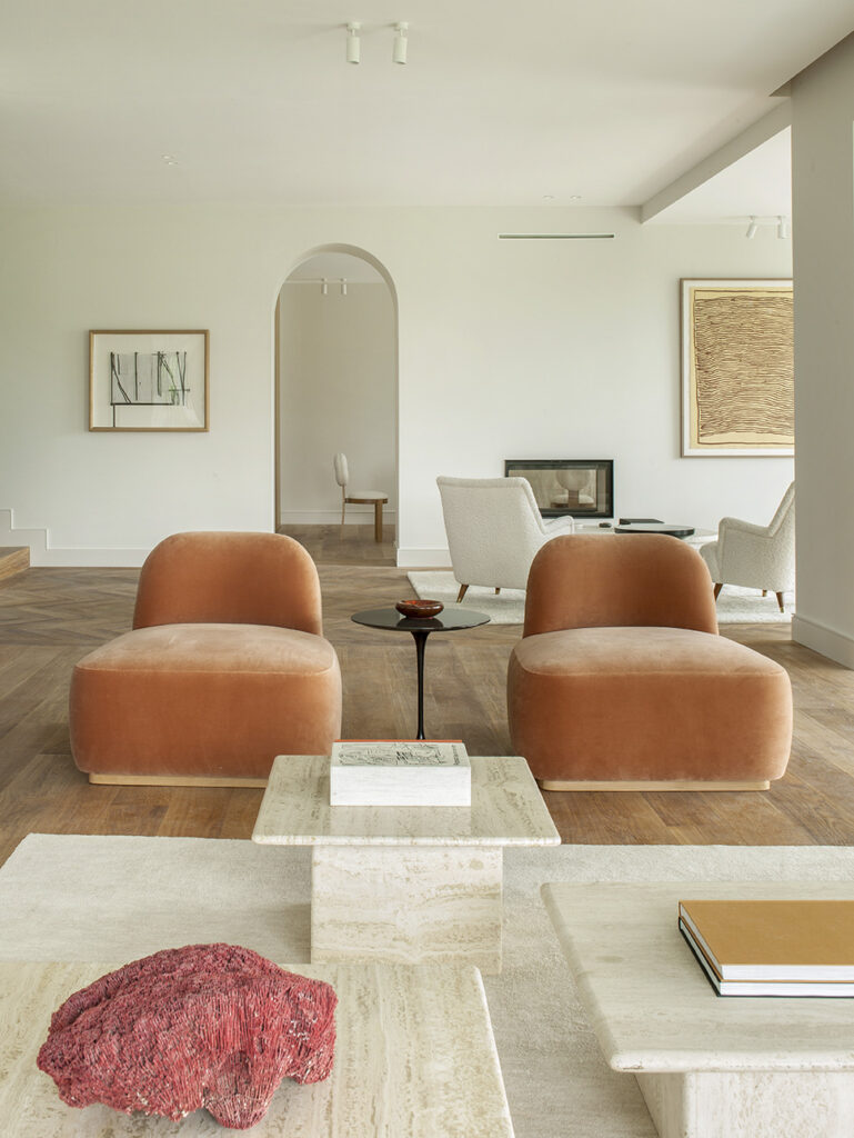 Paloma Botas destaca el salón como su espacio favorito en la vivienda, comentando: “Sin duda, el salón, donde vuestra piezas le aportaron ese punto diferencial al espacio.” De entre todas las piezas, la butaca Aretha se destaca como su favorita en este entorno.