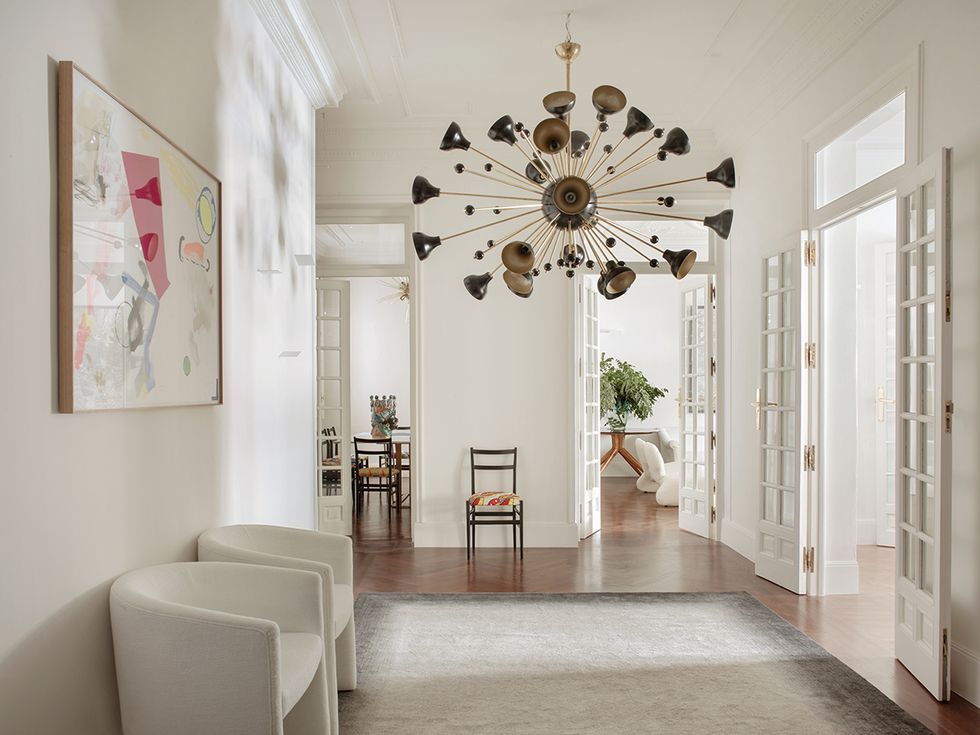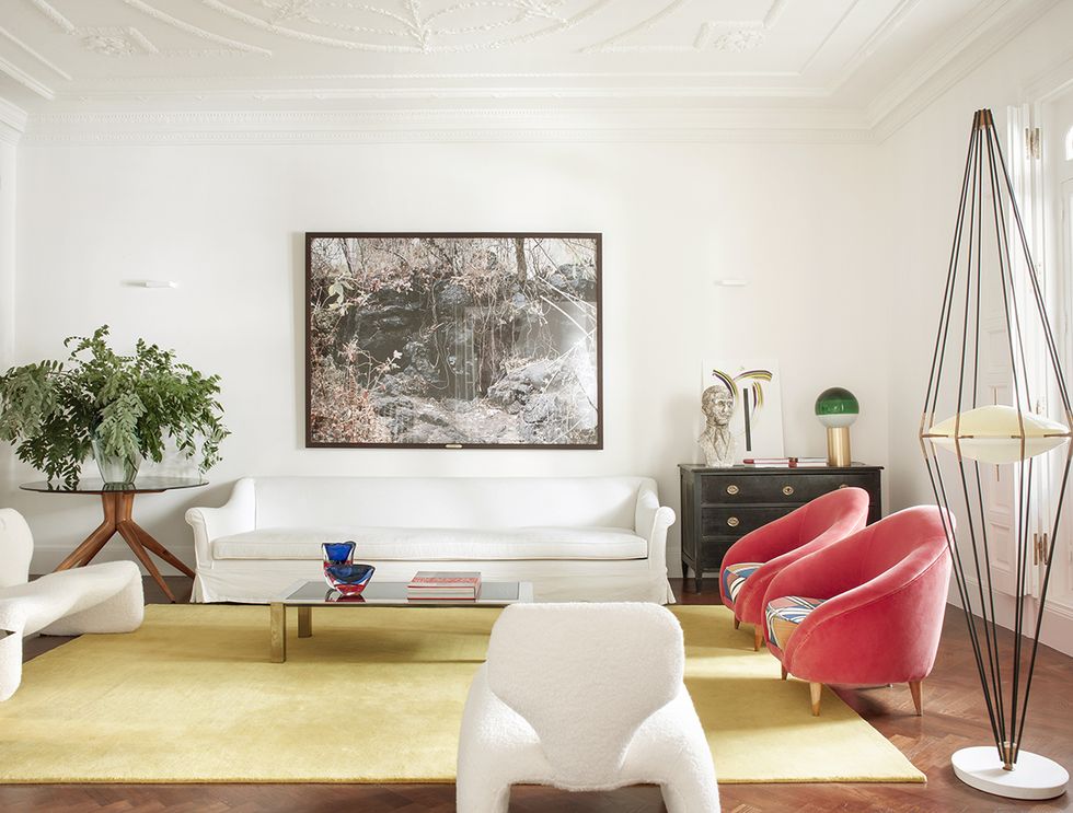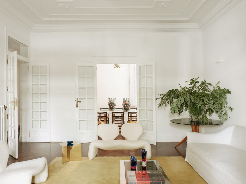 El salón es la joya principal de este proyecto. El contenedor en sí presenta un estilo clásico con techos altos, una armonía ideal con el mobiliario seleccionado de Studio Bañón.
